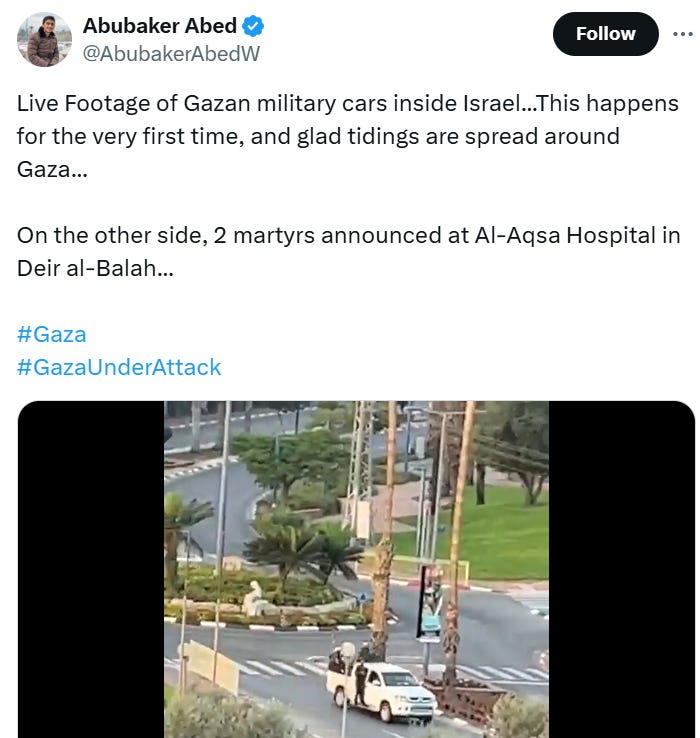 One of Abed’s posts from October 7th. Source: AbuBaker Abed X