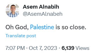 Unsurprisingly, Alnabih is quite the fan of the terrorist organization he proudly serves. Here are just several examples of posts supporting the October 7th massacre and Hamas: