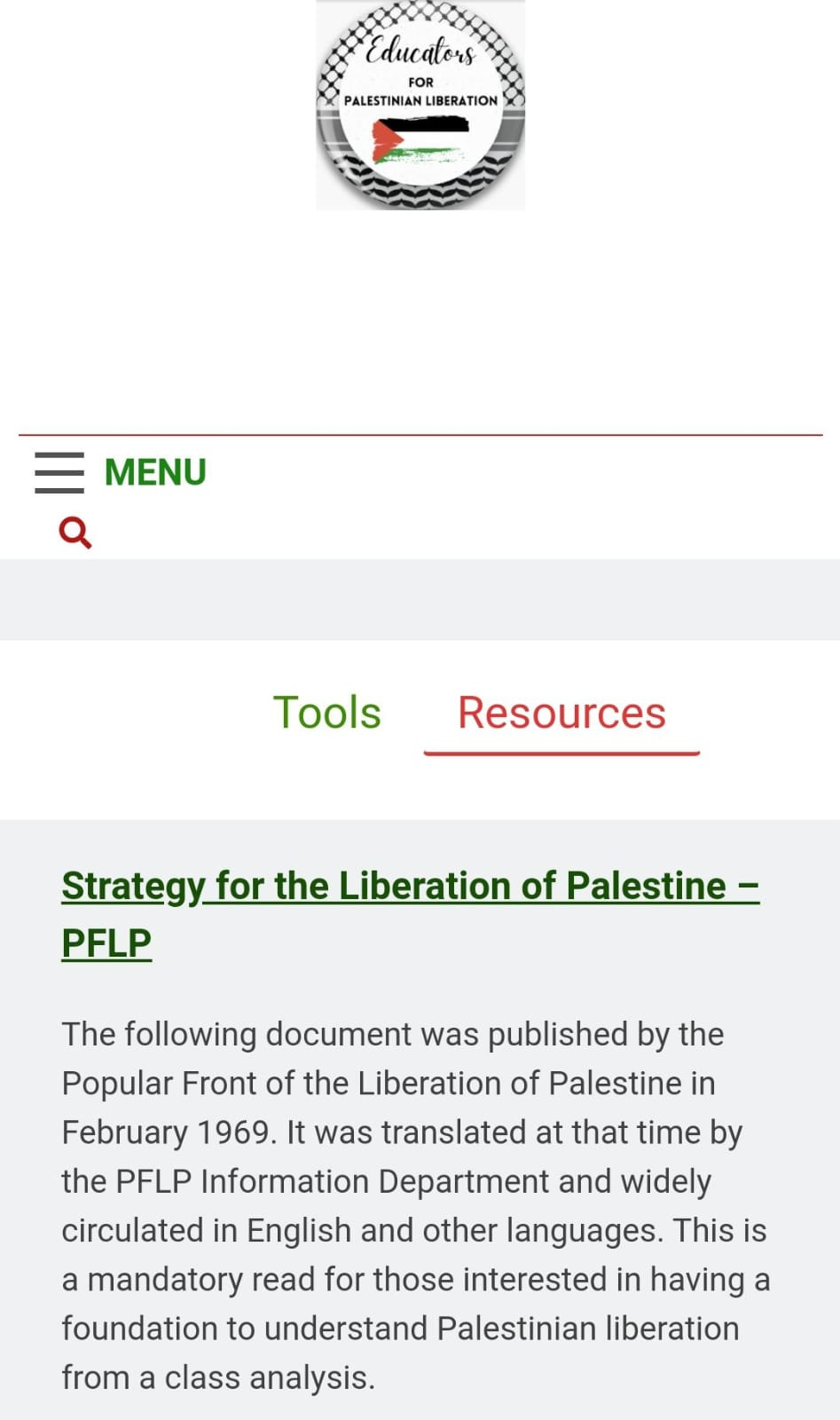 Most disturbingly, Educators for Palestinian Liberation lists the PFLP’s Strategy for the Liberation of Palestine as a “mandatory read.”