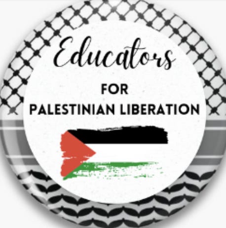 Quite predictably, Zeidan justified the October 7th massacre. She also collaborated on a post glorifying Khader Adnan, a deceased former prominent member of the US-designated Islamic Jihad terror group famous for supporting suicide bombings. And this woman is a teacher. Zeidan’s Linktree also directs people to the Hezbollah-affiliated Al Mayadeen website and to the homepage of ANOTHER K-12 educator group called Educators for Palestinian Liberation.