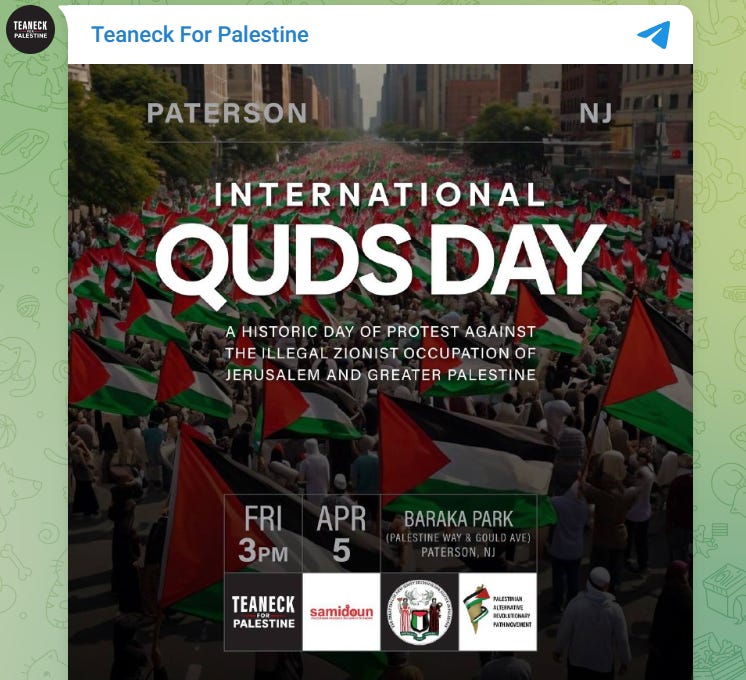 As everyone’s noticed at this point, major American cities like NYC and LA have been the site of deranged pro-Hamas riots since October 7th. Much less discussed, however, is the existence of pro-Hamas networks in smaller towns that aren’t as attention-grabbing, especially those with large Jewish populations. Once such town is Teaneck, New Jersey.